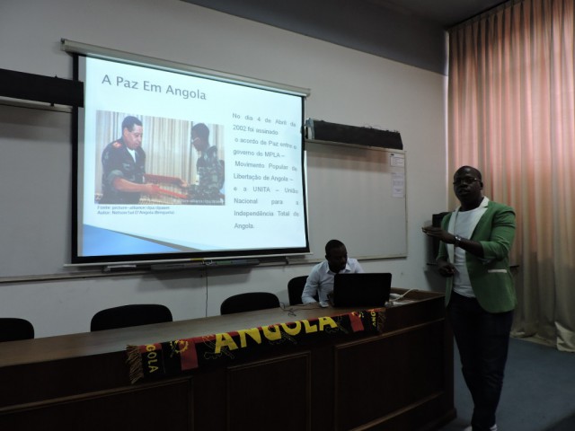 Luego de 27 años de guerra civil, que en la década de 1990 envolvió a todo el país y tuvo como uno de sus focos a Kwito, capital de la provincia de Bié (sede de la ESPB), el 4 de abril de 2002 –tras la muerte en combate de Jonas Savmbi, líder histórico de UNITA– se firma el acuerdo de paz entre el gobierno del Movimiento de Liberación de Angola (MPLA) y la Unión Nacional para la Independencia Total de Angola (UNITA). “A partir de esa fecha, Angola alcanzó la paz definitiva. Esto abrió puertas hacia el crecimiento futuro en todos los niveles. Su economía, fuertemente basada en la explotación de petróleo y diamante, alcanzó tasas de crecimiento por encima de la media mundial. La circulación de personas entre las provincias, impensada durante la guerra, actualmente puede desarrollarse con absoluta normalidad. La educación también evolucionó con la creación de siete universidades”, subrayó Antonio Van Dunem, uno de los jóvenes angolanos, quien también presentó las atracciones turísticas de dicho país africano.